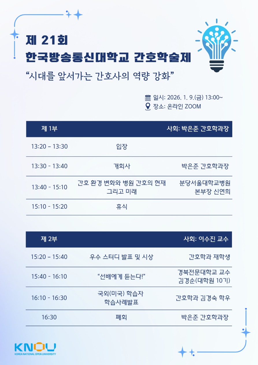 제21회 간호학술제 일정을 아래와 같이 안내드립니다.