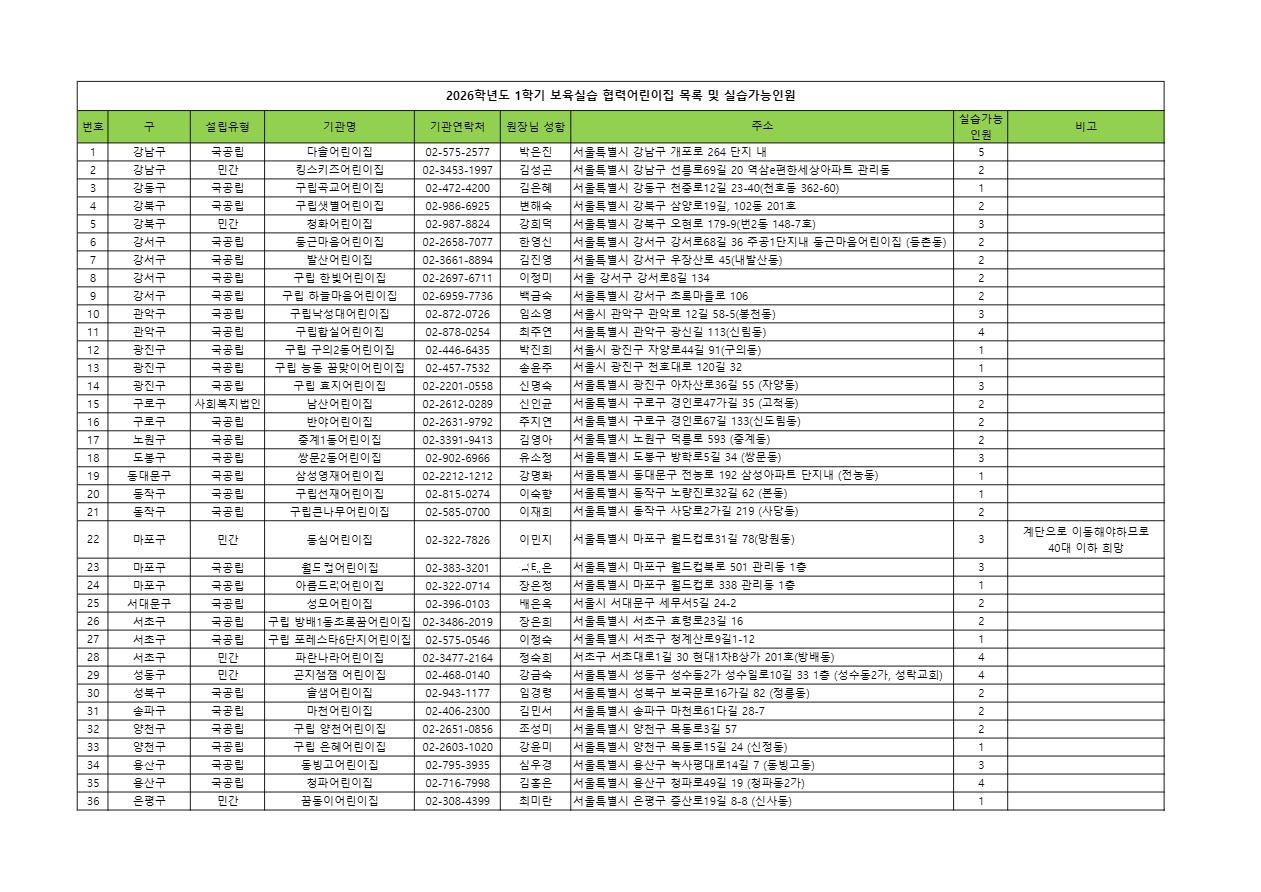 1. 2026학년도 1학기 서울지역대학 보육실습 협력기관 신청방법