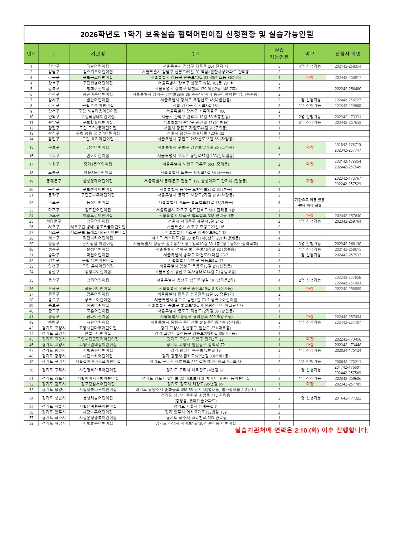 * 확정된 기관으로 연락하실 경우 2026.2.10.(화) 이후로 진행해주시기 바랍니다.