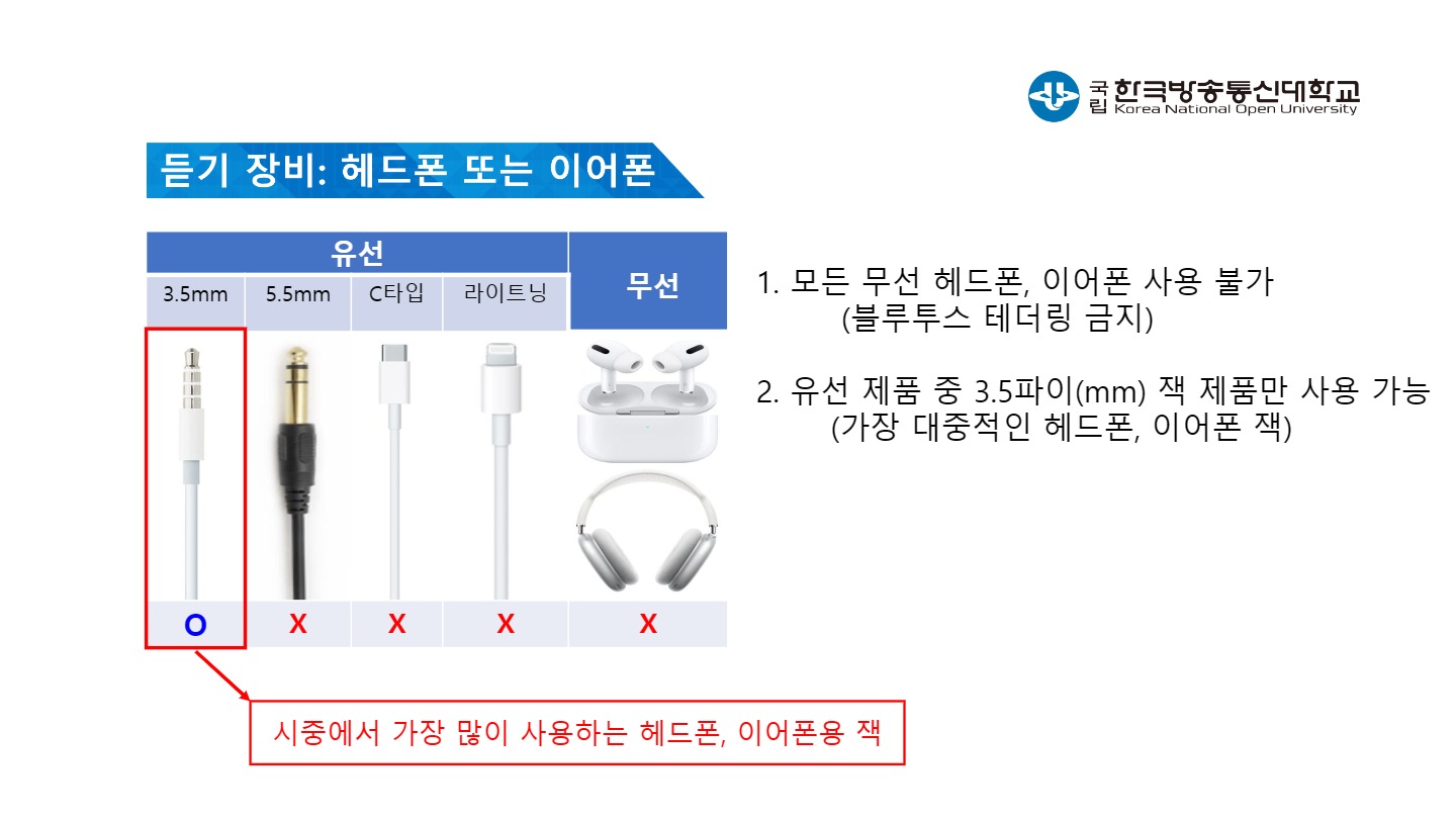 해당 과목의 기말시험에 응시하는 학생들은 모두 개인 이어폰을 준비해서 시험장에 입장해야 합니다.