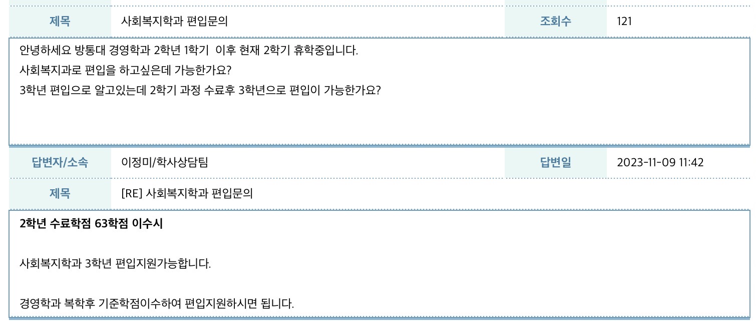이번학기 끝나고 다른 과로 편입학이 가능한지 궁금합니다