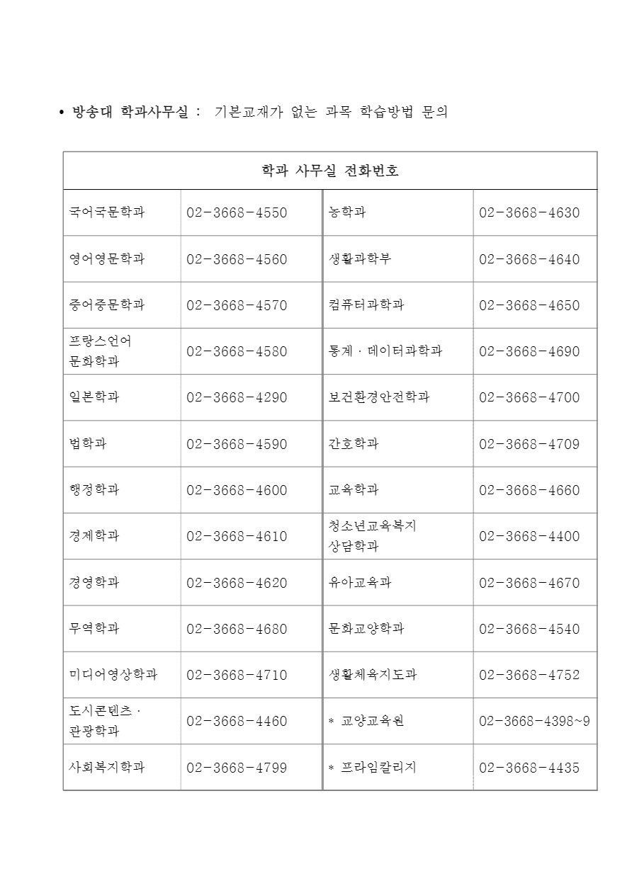 붙임 : 학과 사무실 전화번호