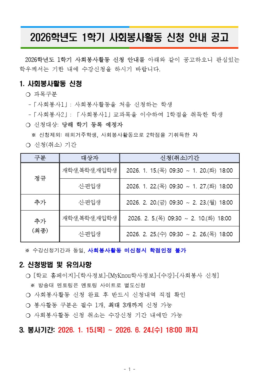 1578 성적 26-1학기 형성평가(학습진도율·연습문제 평가) 운영기간 시행 안내 file noir 2026.01.22 66
