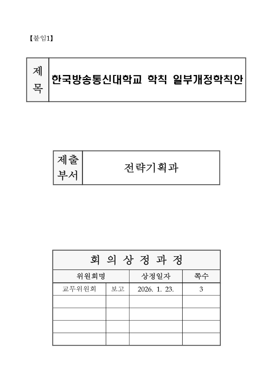 2026. 2. 11.(수) 18:00까지 다음 사항을 기재한 의견을 한국방송통신대학교총장