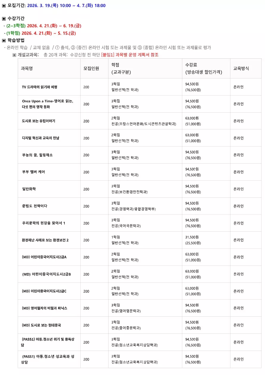 [프라임칼리지] 4월 학점과정 수강신청 안내