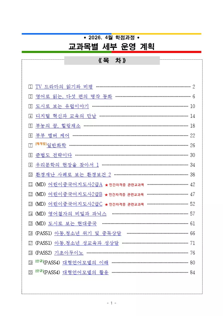 26-1학기 과제물 큐레이션 선정 과목 및 업로드 일정 안내