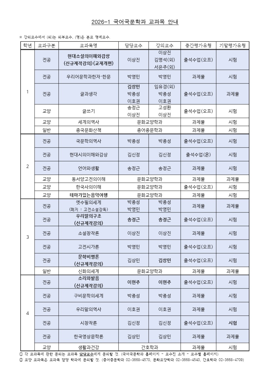 ⬇ https://korean.knou.ac.kr/bbs/korean/2085/778917/artclView.do?layout=unknown 2026.1 국어국문학과 교과목 안내.hwp 미리보기 ⬇ 2026.1 국어국문학과 교과목 안내.pdf Love 3 삭제요청 삭제요청 Scrap 스크랩