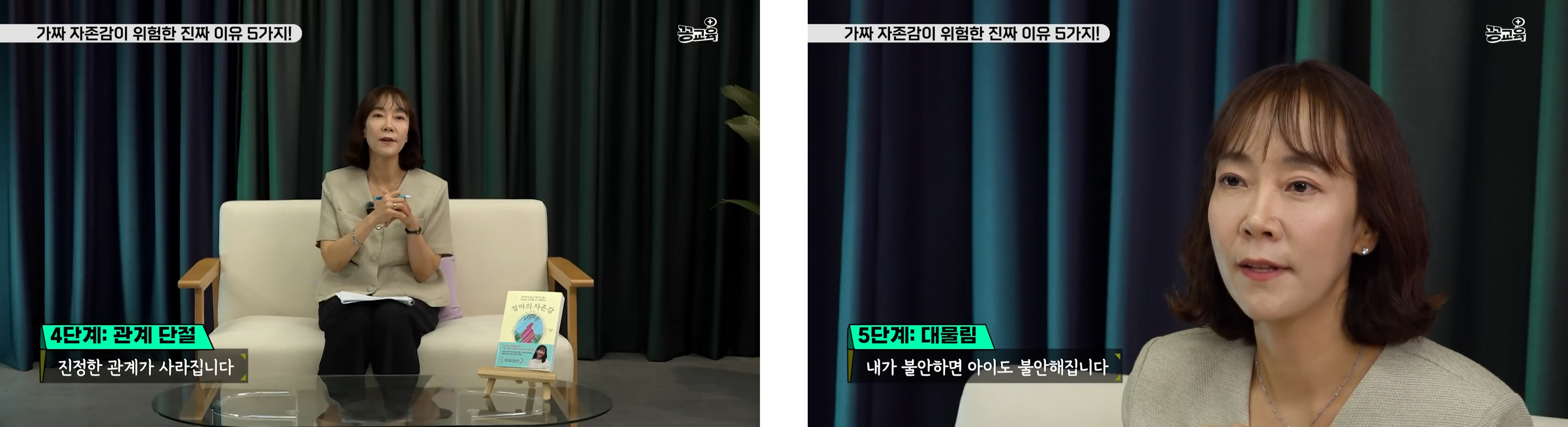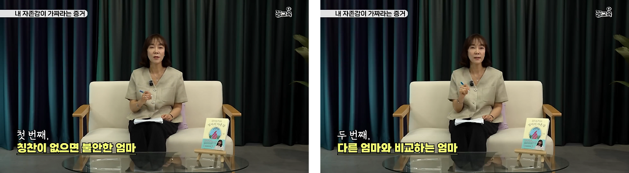 가장 걱정해야 하는 부분이 대물림이에요. 이런 가짜 자존감으로 인한 엄마의 불안과 타인의 시선에 과하게 집착하는 경향이 애도 똑같이 보고 배운다는 거죠.