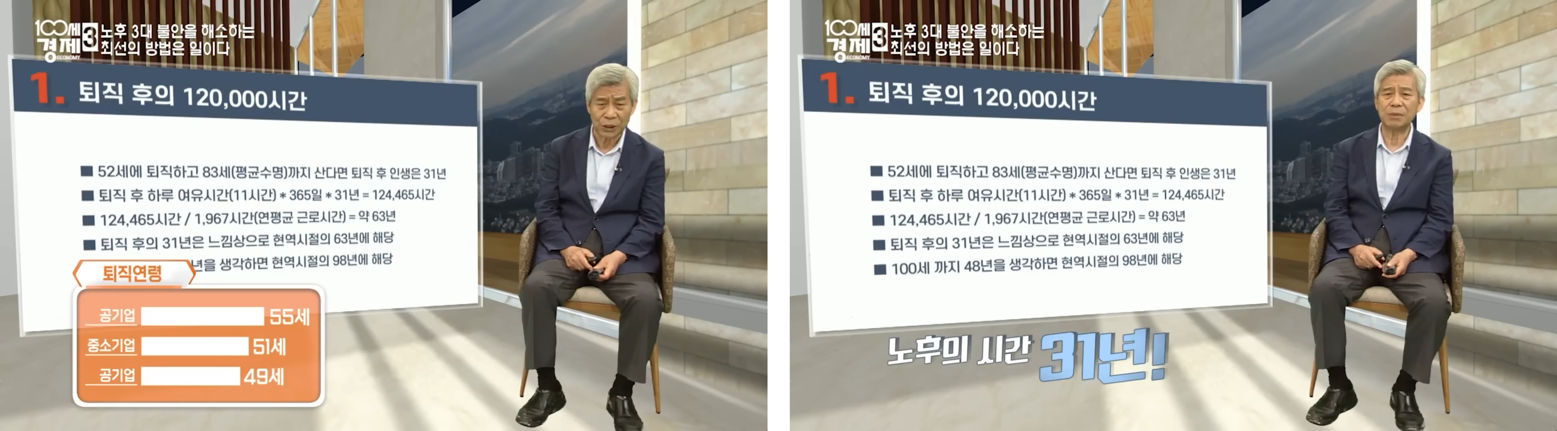 즉, 퇴직 후 31년은 현역 시절 6년 넘게 일한 시간만큼 길다는 거예요.