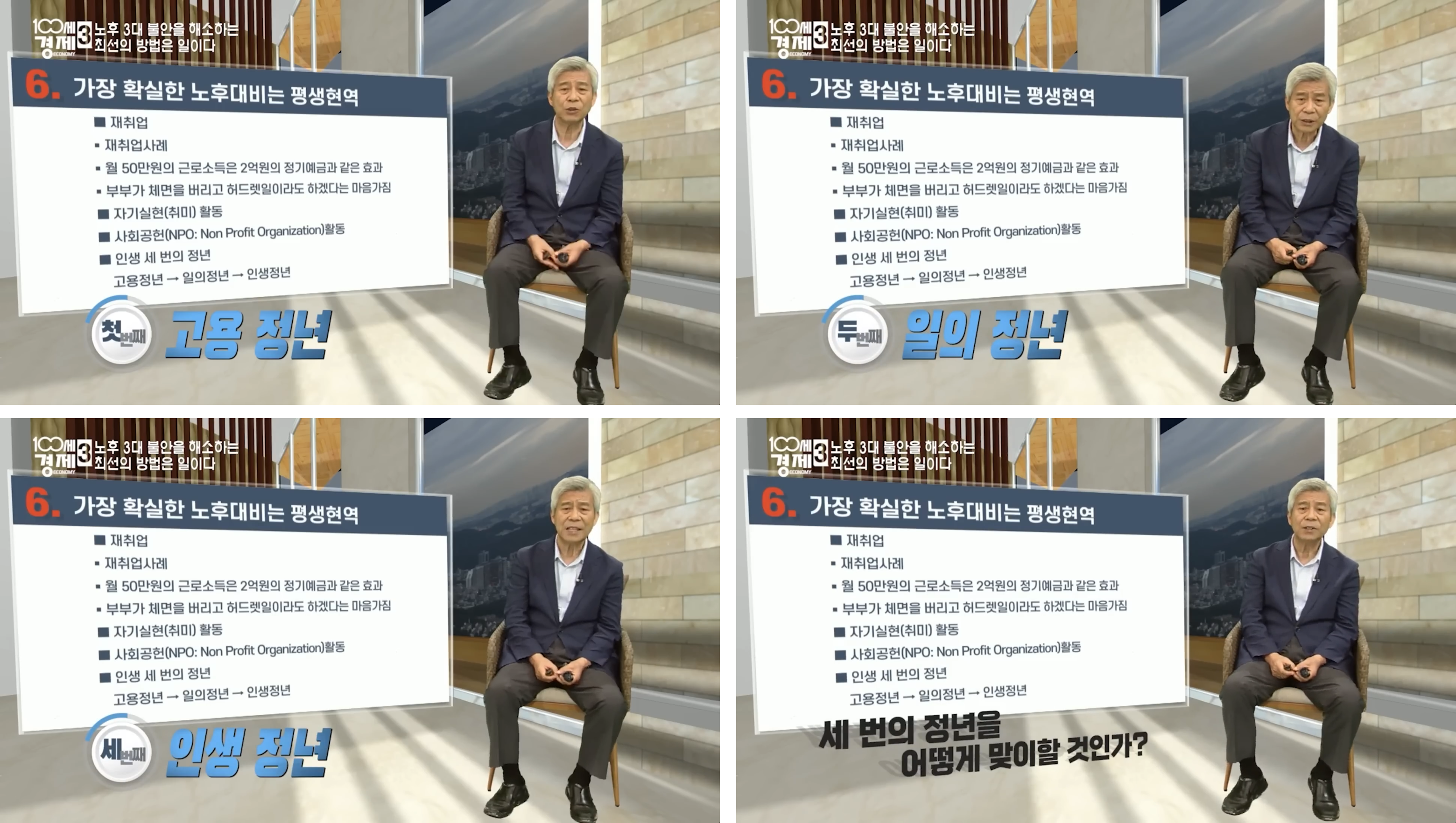 “가장 확실한 노후 대비는 재테크가 아니라 평생 현역이다.”