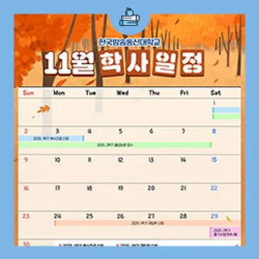 한국방송통신대학교 2025학년도 11월 학사일정을 안내합니다! 방송통신대학교의 학우 여러분들 오늘도 좋은 하루 보내고 계실까요? 어느새 기말시험이 다가온 11월의 시작점입니다✨ 모두 노력하신 만큼 좋은 결과 있으시길 바랍니다. 2025년 11월, 방송대 주요 학사일정도 꼭 기억해 주시기를 바랍니다! *상기 일정은 학교 사정에 의해 변동될 수 있습니다. 방송대가 여러분의 학교생활을 응원합니다!