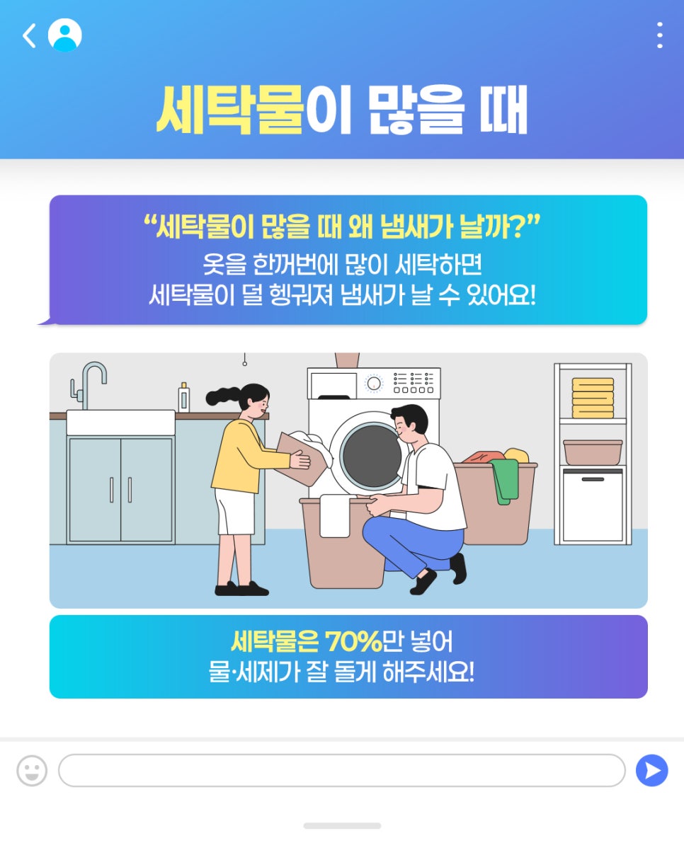 세탁물이 충분히 헹궈지지 않아 냄새가 날 수 있어요.