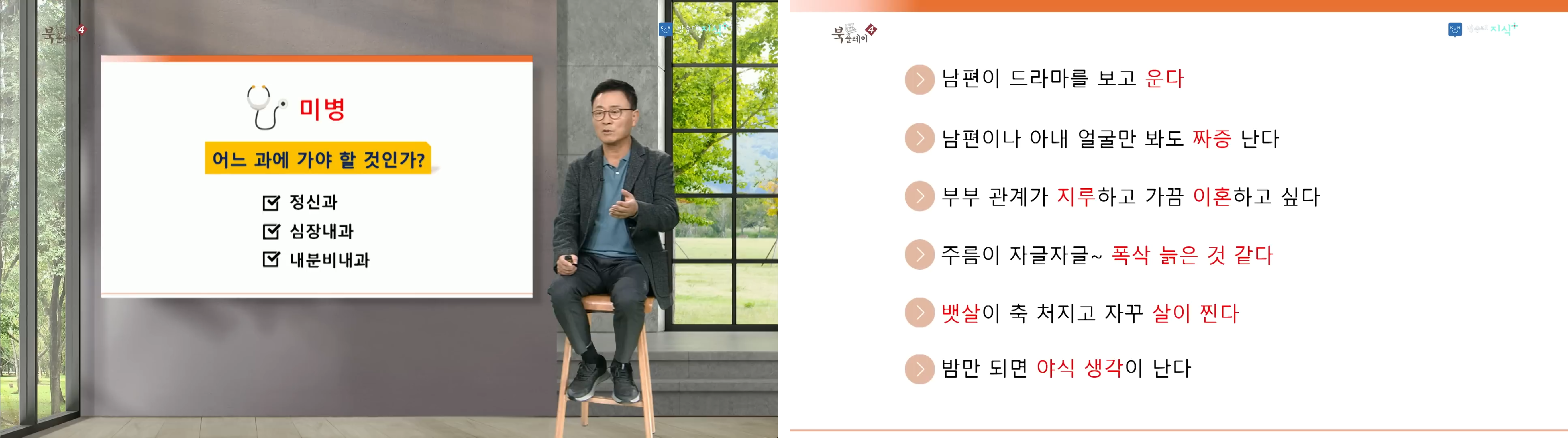 특히 중요한 개념이 미병입니다. 건강하지도, 그렇다고 정상도 아닌 회색지대의 상태입니다. 병원에 가면 “괜찮다”는 말을 듣지만, 실제로는 괜찮지 않은 경우가 많습니다. 이 시기에는 이미 호르몬에 균열이 생겨 있습니다. 호르몬이 몸에 신호를 보내고 있는 상태인 것이죠. 이 균열을 이 단계에서 찾아 고치면, 질병으로 진행되지 않을 수 있습니다.
