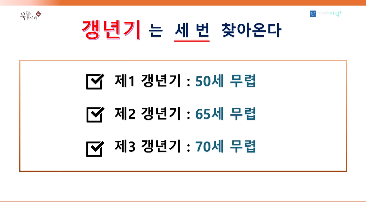 그런데 갱년기는 50대에 한 번 겪고 끝나는 것이 아닙니다.