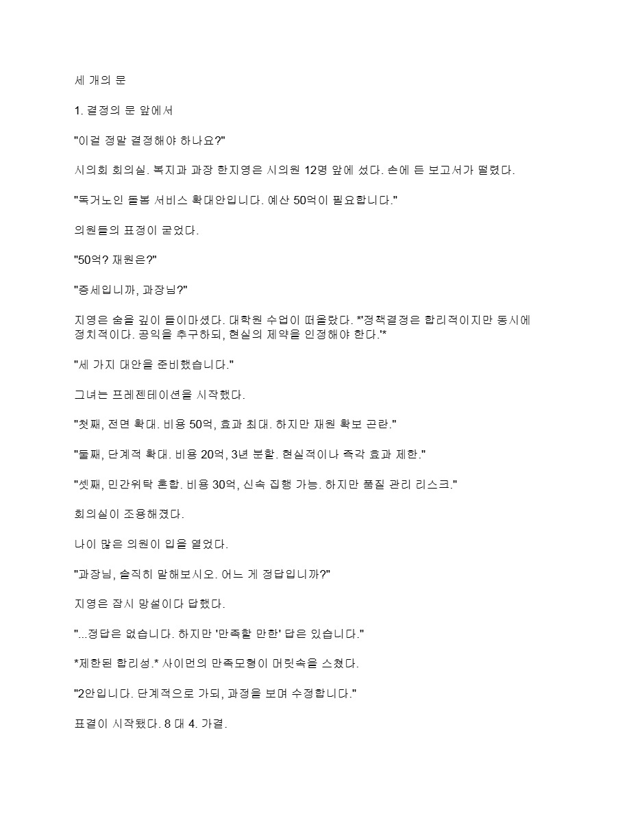세 개의 문(사회복지 정책론 7강 소설)