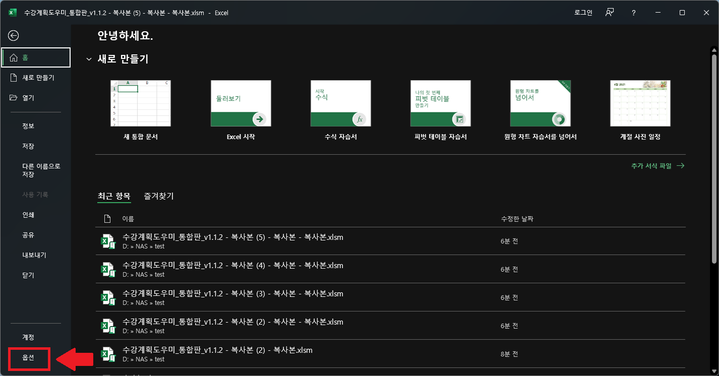 보안 이슈가 발생한다면, 엑셀 내 "신뢰할 수 있는 폴더"를 생성 후 복사하여 열기
