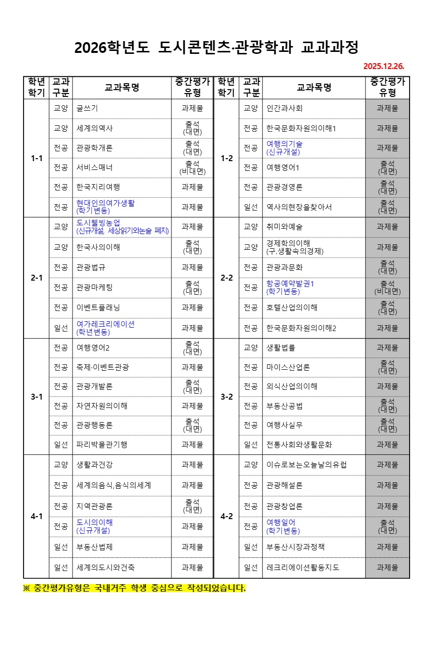 ⬇ 2026학년도 도시콘텐츠·관광학과 개설 교과목(251229).pdf